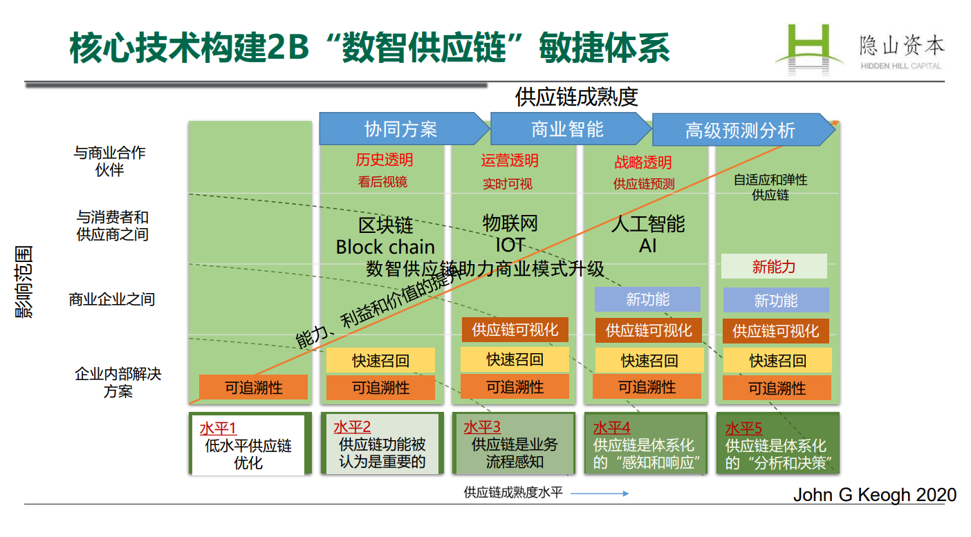 所以说,技术改变供应链,进而改变商业范式和企业成功的模式。技术的价值是不断提升的,并从企业内部一直延伸到外部商业合作伙伴。董中浪谈到,核心的技术构建敏捷供应链体系,这是现在正在发生,并将在未来五年深刻影响和改变产业的事。