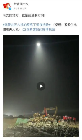 无人机巡查不舍昼夜,高空补光助夜间抢修