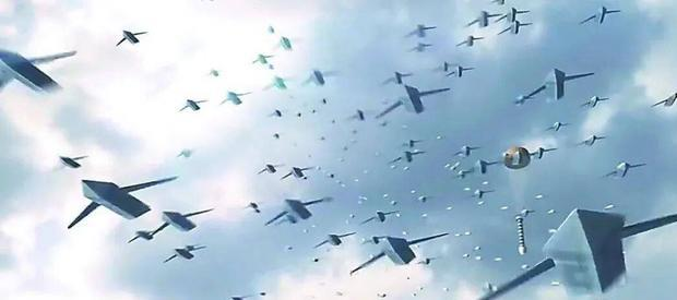 进入航道以后无人机的机翼就会展开,并且自动激活自身的动力系统,通过动力系统实现飞行作业。随着无人机的陆续升空,它们会按照原来的设定的程序组成编队继续向目标空域飞行,并且在目标空域上空自主寻找供给目标,一旦锁定目标,将会立即调整到攻击模式,展开自杀式的空中袭击,这种场景就与《天使陨落》中的片段极为相近了。
