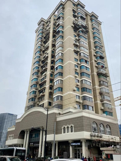 在虹口區北外灘街道轄區,臨近保定路和長陽路處有一棟房齡長達20多年的獨棟高層小區——蘭僑大廈。去年,大廈出現了掉落牆皮的現象,有極大安全隱患,引得過往行人心慌慌。