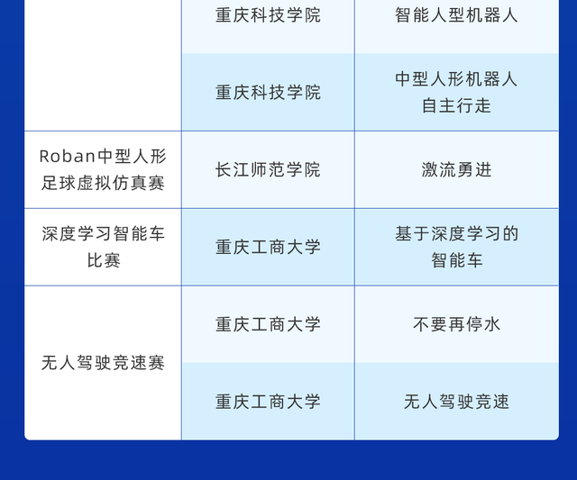 大赛组委会负责人表示,从创新类技术应用、创意方案到竞技类、应用类的人机协作、机器协作,从多关节到双足、多足,从核心零部件感知技术到机器学习的脑机结合,此次选拔赛不仅是对重庆本土高校在机器人、人工智能领域所取得的突出成绩进行了一次集中展示,比赛本身也是对机器人智能产业的一次引领性、创造性的积极探索。
