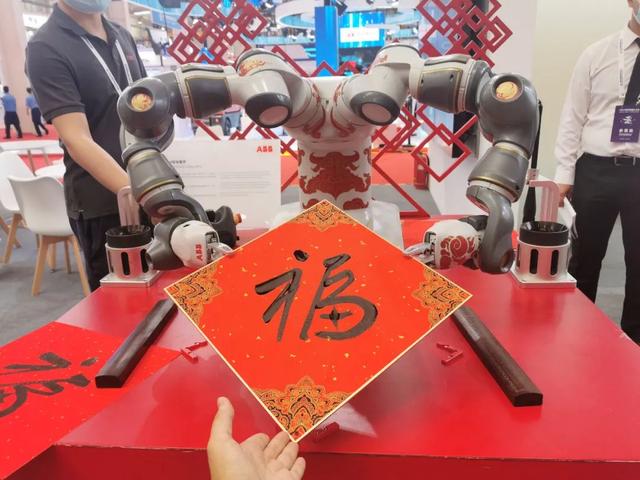 还记得牛年央视春晚上,一款会写福字的“书法机器人”吗?在ABB展台,现场挥毫“献福”的它一撇一捺,hold得住多种字体。据介绍,这台灵巧的机器人是全球第一款真正意义上的协作机器人。