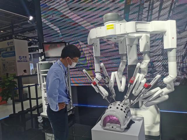 一台宛若八爪鱼的腔镜手术机器人颇为引人驻足。据介绍,医生依靠它,只需操纵主控台车上的主操作器,就可以对手术台车上装载的手术工具和3D高清电子内窥镜进行遥操作,完成跨科室多适应症的微创手术治疗。