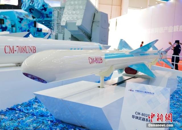 9月29日,广东珠海,多种类导弹亮相第十三届中国国际航空航天博览会。图为CM-802B导弹武器系统。 中新社记者 陈文 摄