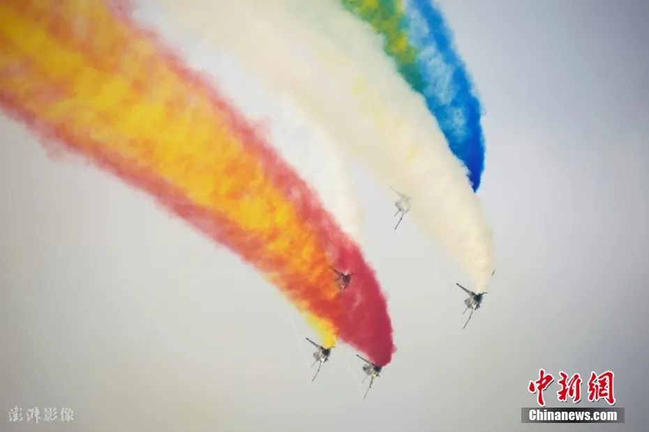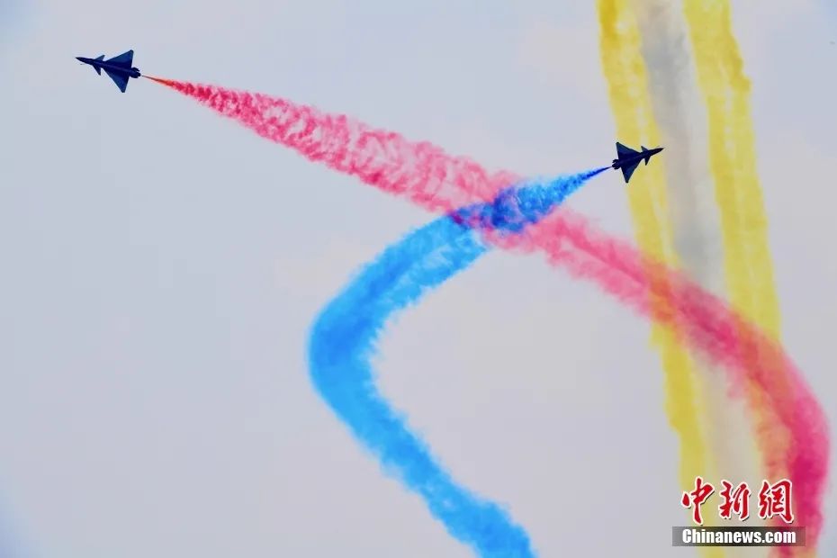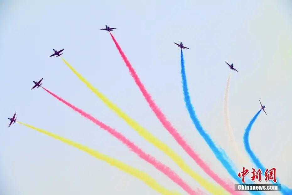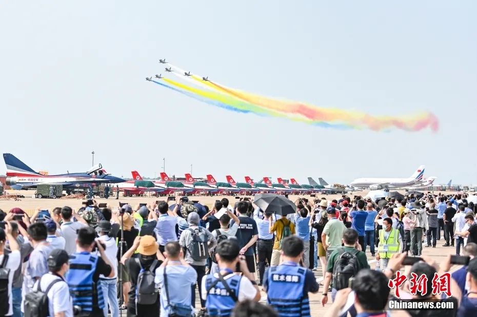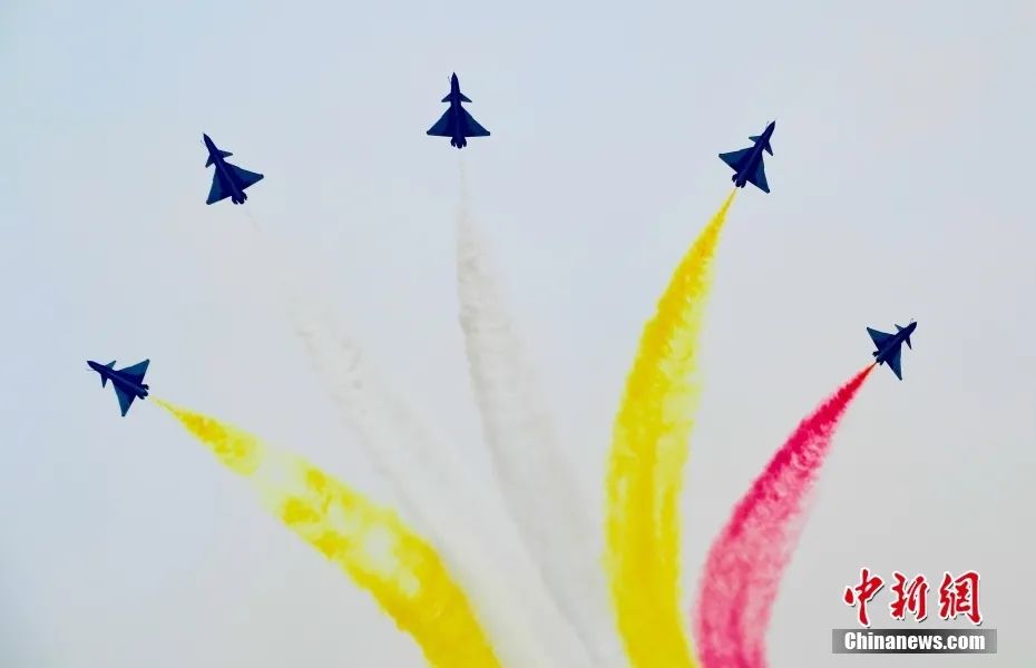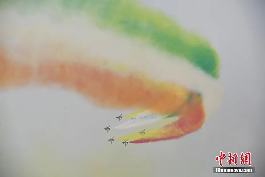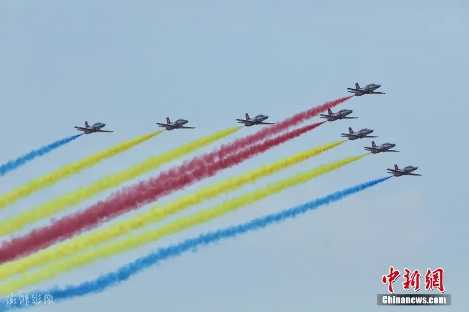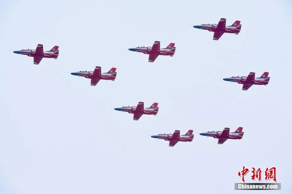9月28日,广东省珠海市,中国空军八一飞行表演队进行飞行表演。当日,第十三届中国国际航空航天博览会在珠海国际航展中心开幕。中新社记者 陈文 摄
