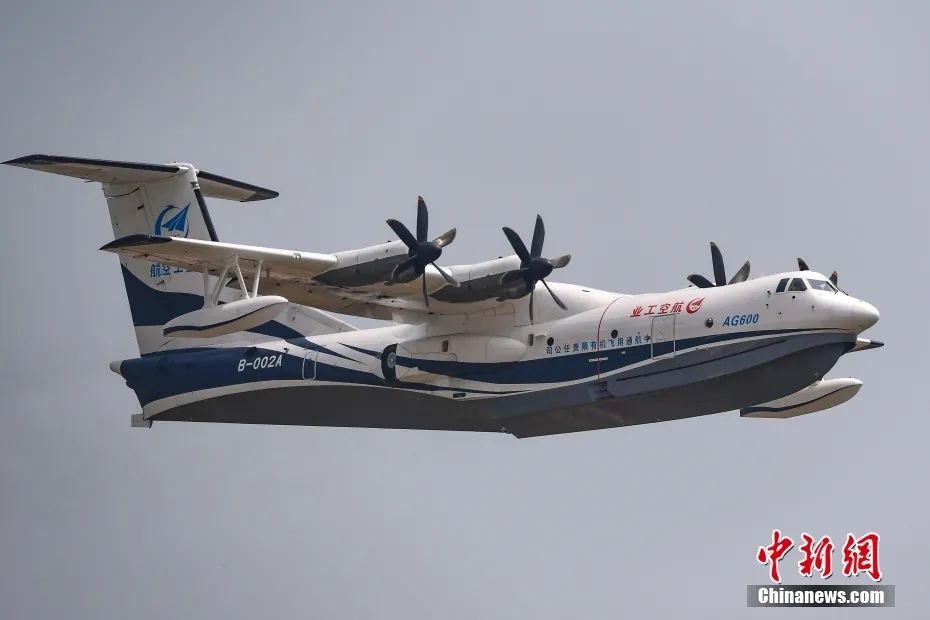 9月28日,广东省珠海市,大型灭火/水上救援水陆两栖飞机“鲲龙”AG600进行飞行投水功能演示。中新社记者 陈骥旻 摄