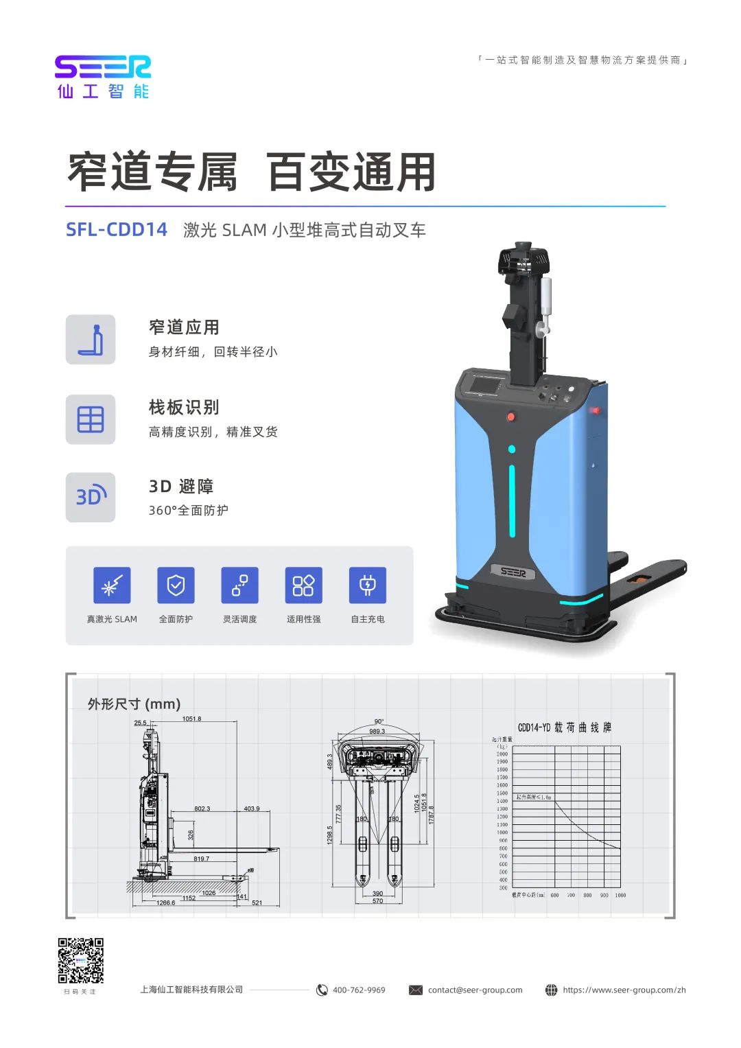 1、SFL-CDD14 | 激光 SLAM 小型堆高式自动叉车