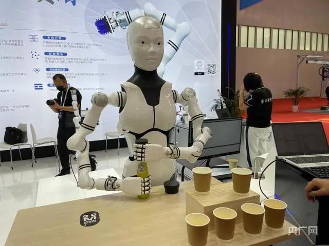 这个手握汽水瓶的机器人是睿尔曼智能打造的,它可以非常轻松地将汽水瓶盖拧下,还可以为现场观众们“斟茶倒水”,动作十分娴熟。此次大会上,睿尔曼智能首次发布面向商业行业应用的复合移动升降机器人,也引起了强烈反响。