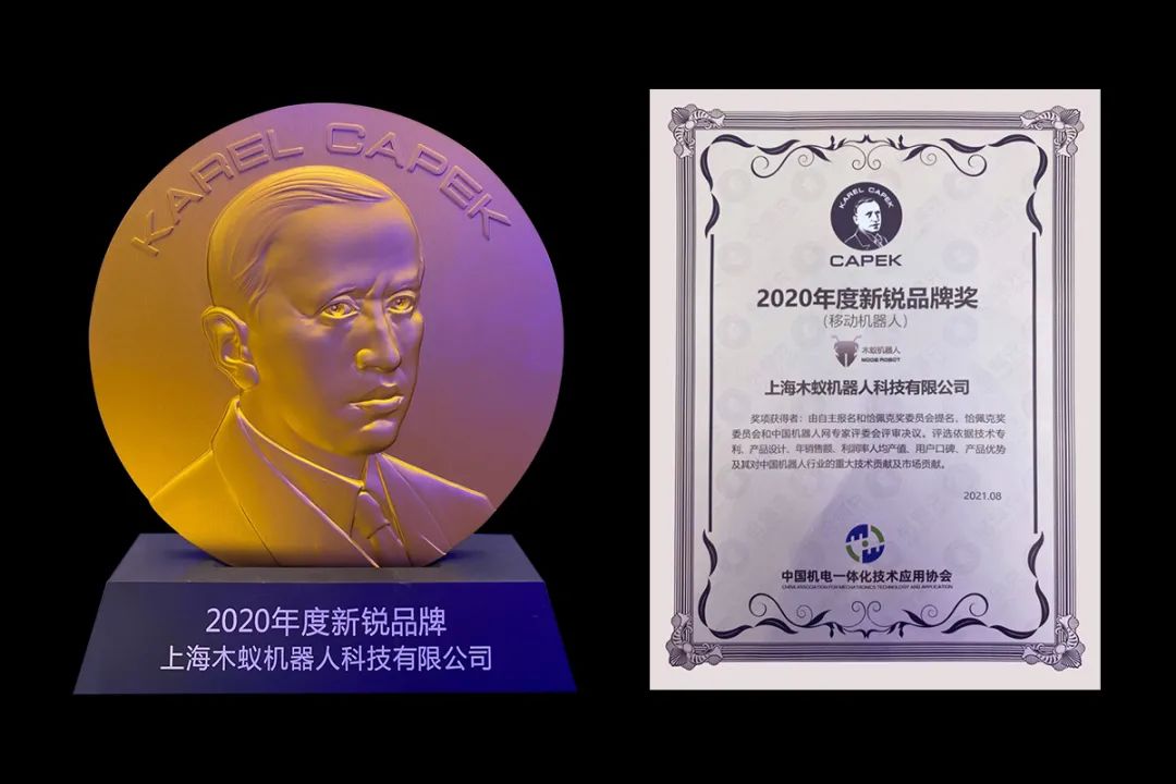 9月13日,第七届恰佩克奖在芜湖举办,经恰佩克奖主办方和评委会的重重筛选,木蚁机器人成功登榜,荣获2020年度新锐品牌奖,木蚁凭借不断创新的产品功能设计,持续深耕物流仓储领域,良好的用户口碑获此殊荣。