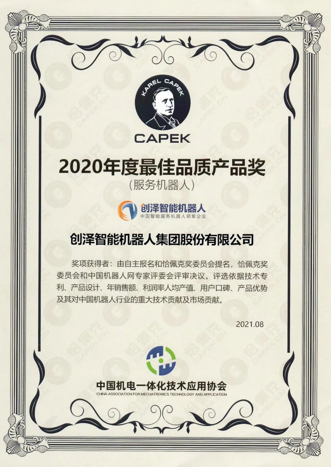此次创泽集团凭借在人工智能和机器人领域的突出表现,成功从恰佩克奖主办方和评委会层层筛选中脱颖而出,荣获恰佩克“2020年度最佳品质产品奖”。这不仅意味着创泽集团的产品与技术受到恰佩克评委会的肯定,同样证明创泽集团被行业内部的认可与肯定。