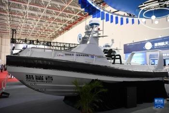 这是航展上展出的巡逻警戒无人艇(9月29日摄)。