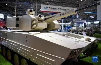这是航展上展出的履带式地面无人作战平台(9月29日摄)。