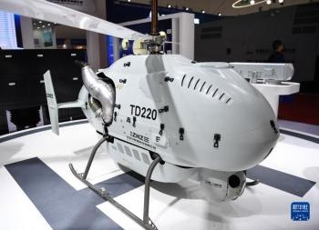 这是航展上展出的共轴无人直升机(9月29日摄)。