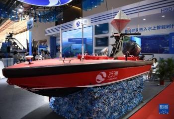 这是航展上展出的云洲无人艇(9月29日摄)。