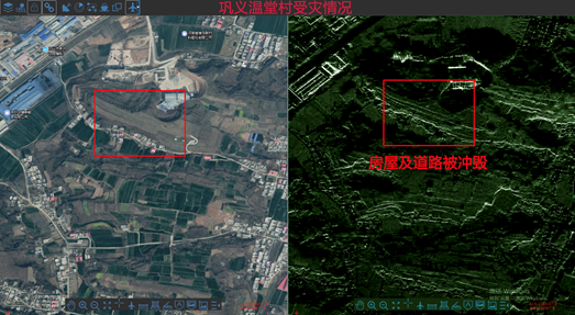在翼龙无人机执行灾情探察、通信保障过程中,接灾情通报,随即转战目标区域利用合成孔径雷达执行地质灾害勘测。获取目标区域合成孔径雷达(SAR)图像,结合该区域历史地理信息,分析研判该区域地质受灾情况。
