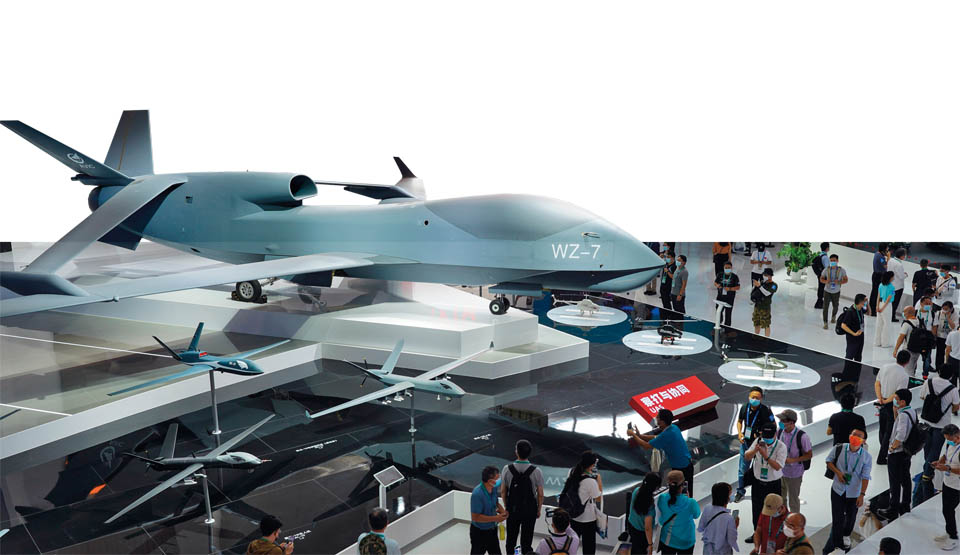 在本届航展上,国产新型无人机的种类和型号都非常多,令人眼花缭乱,其中不乏无侦-7(WZ-7)、无侦-8(WZ-8)、攻击-11、“彩虹”6、“飞鸿”(FH)97等新型无人机,显示了中国在无人机领域继续保持强劲的发展势头。