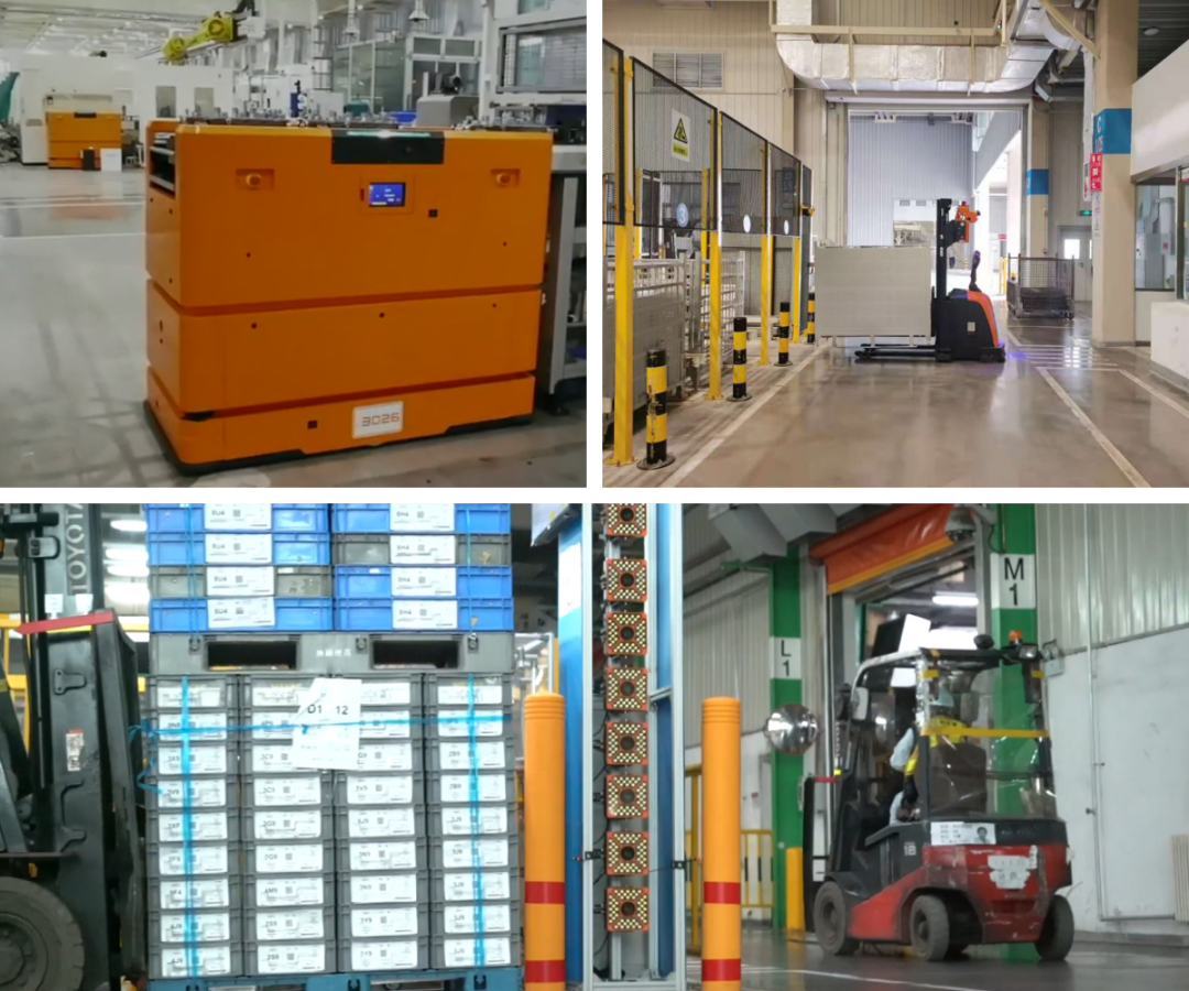 叉取AMR支持搬运物料重量可达2T,全自动出入库存储。无需改造现有载具,降低项目成本。在产线配送环节,AMR硬件安全防护等级高,支持全向运行,适应紧凑车间布局。