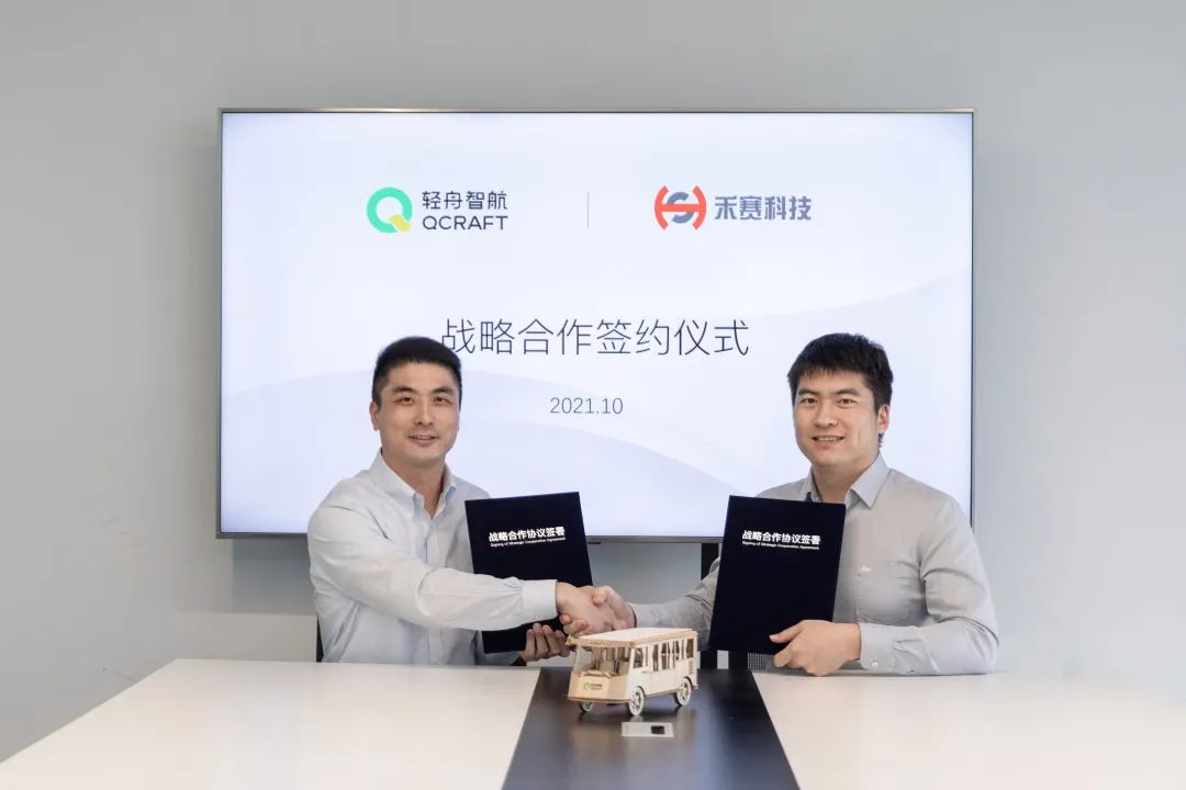禾赛科技全球业务拓展副总裁卢炜与轻舟智航联合创始人、首席科学家大方在北京签订了战略合作协议。