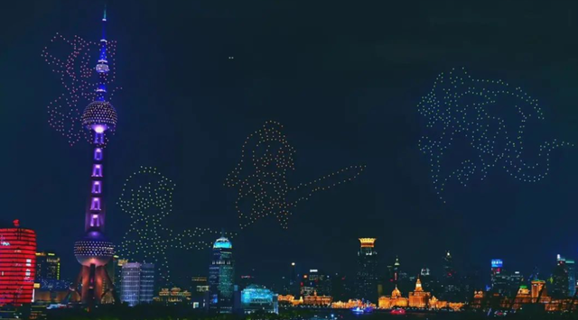 这是《航拍中国》对上海城市夜景的一个描述,如今将之放在无人机灯光秀上也同样贴切。