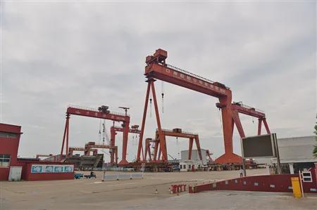 口岸船舶公司地处上海2小时经济圈的长江三角洲黄金水道北岸,岸线近3000米,拥有20万吨级干船坞一座、5万吨级船台两座、600吨龙门吊一座、500吨龙门吊两座、舾装码头4座,年造船能力达200万载重吨。