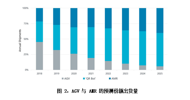 虽然这似乎是一个很大的交易,但它甚至还没有达到市场饱和的上限。2025年,移动机器人的市场渗透率仍将不超过30%(图1)。此外,这些渗透率水平还没有考虑到安装了多种类型机器人的设施,也没有考虑到在一个仓库中大规模推广车队的情况。鉴于此,自动导引车(AGVs)和自主移动机器人(AMRs)的市场机会就更大。