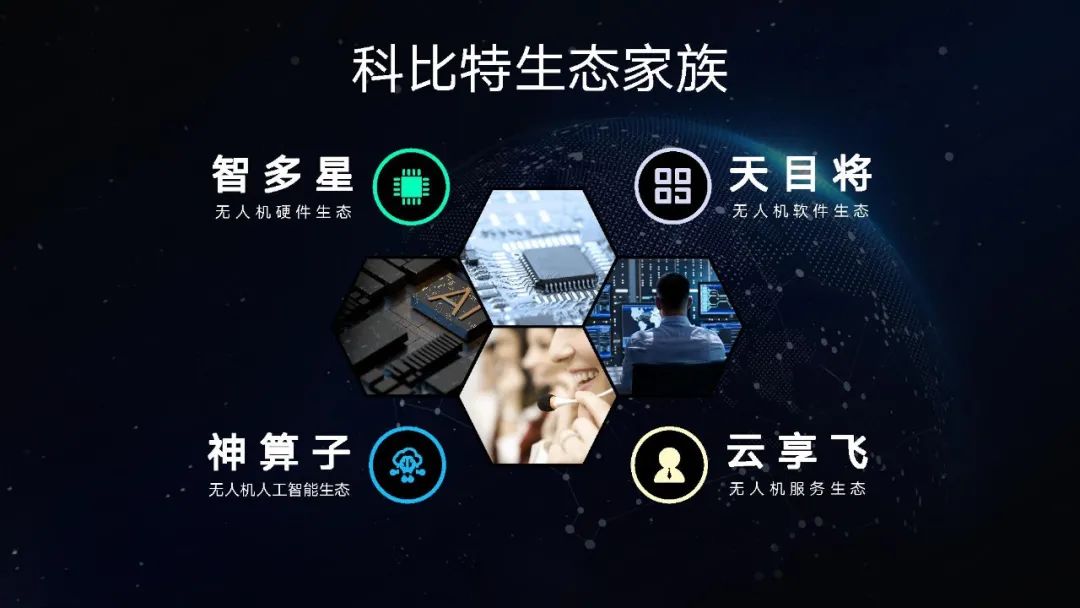 基于“开放、协作、共赢”三大理念,科比特发展了无人机四大生态体系,即“智多星”硬件生态、“天目将”软件生态、“神算子” AI算法生态以及“云享飞”服务生态。这四大生态体系始终秉承三大理念,每个生态既独立发展,又互联互通,共同构成科比特最核心的市场竞争力。