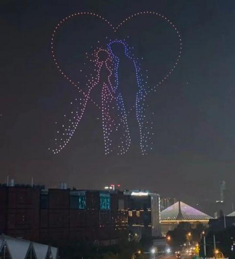 背后的策划公司表示,他们也是第一次采用无人机表演的方式来合作,准备过程比较麻烦,报备就报备了两个月。最后的结果大家都很满意,男主人公当天很紧张,大家都很羡慕女主人公。