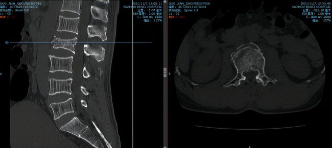 11月初山东的郭大叔如往常一样在厂里干活,突然设备掉落砸伤了其腰背部,当时他就不能动了,家人、同事连忙将他送到当地医院检查,结果ct显示大叔的L2椎体骨折。这可急坏了大叔的家人,家人找亲朋好友四处打听,得知徐州仁慈医院可以做脊柱微创手术,连夜带着郭大叔来我院就诊。