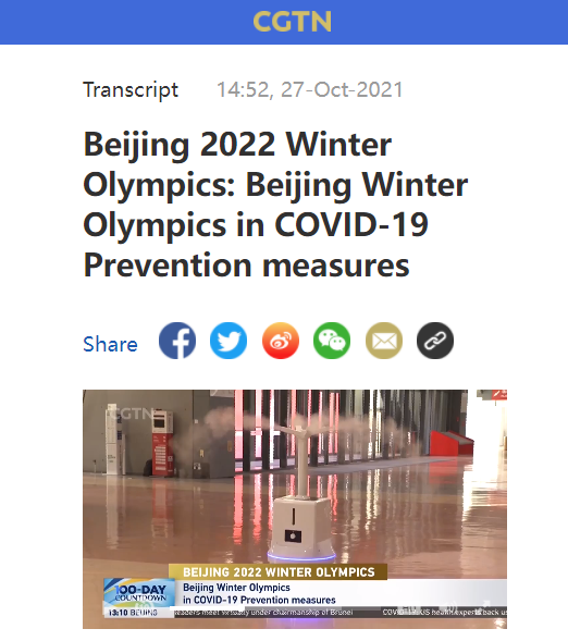 【报道链接】Beijing 2022 Winter Olympics: Beijing Winter Olympics in COVID-19 Prevention measures - CGTN
