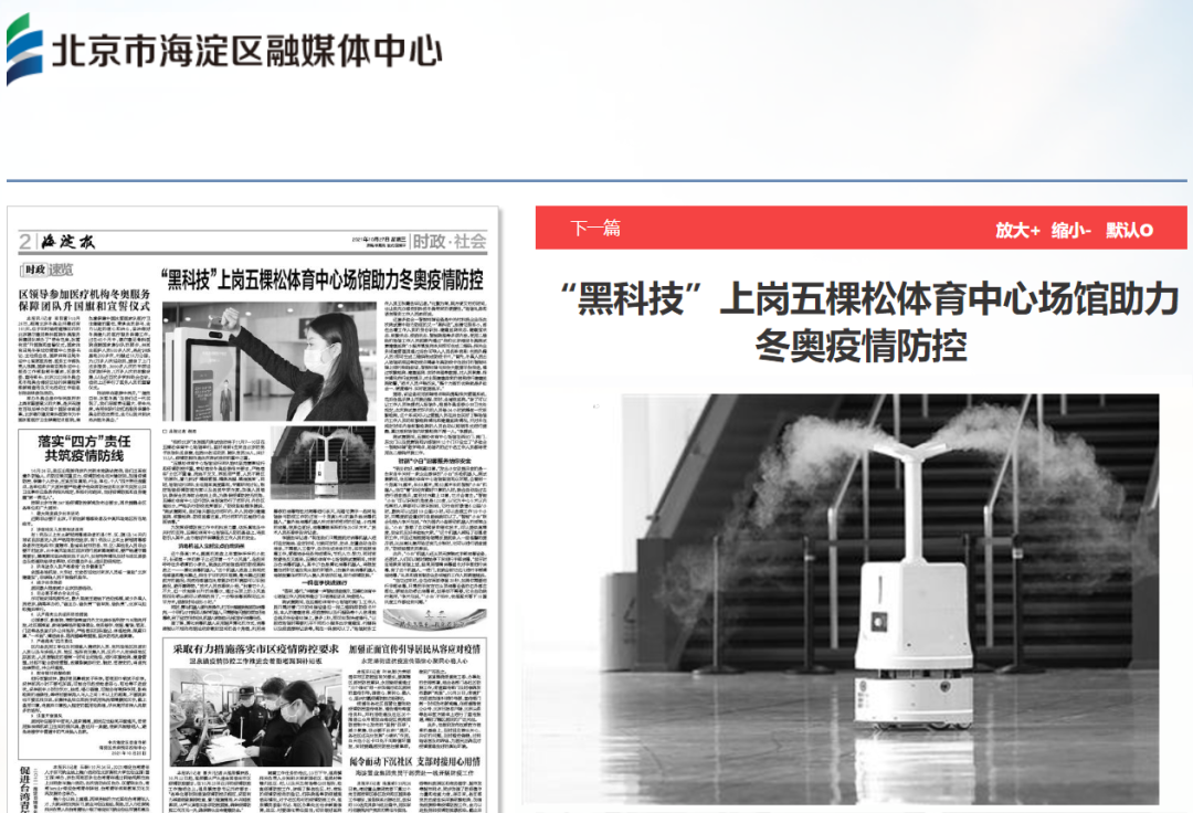 【原文链接】五棵松体育中心场馆防疫“黑科技”上线 https://m.btime.com/item/44n4nbp95pt9vdbr6stp9rd9va6