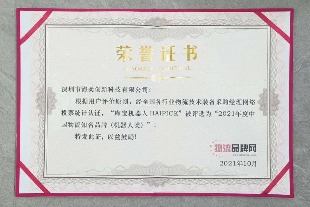 在由物流行业头部媒体物流品牌网主办的“2021年中国物流知名品牌榜”评选活动中,海柔创新以强大的市场竞争力,荣登“机器人”类榜单。