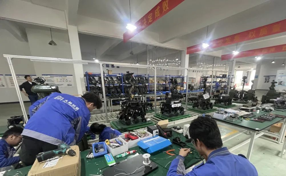 签约仪式后,大陆智源CEO高源带领AICA签约团现场参观了苏州工厂。车间内各项生产环节整齐划一,现场工作人员有条不紊进行机器人组装生产工作。同时机器人质检员在对刚下组装线的产品进行检测调试,确保每台机器人合格出厂。AICA对我司安防机器人一体化生产现场表达高度赞许。