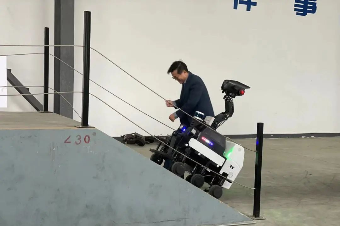 在产品性能测试区,AICA董事经理蔡正皓与ANDI-机器人进行了一场“30°爬坡友谊赛”,本次“比赛”双方选手并列第一。AICA董事经理蔡正皓认为,这种坡度对于人类都是极大的挑战,但对ANDI-机器人却十分轻松,不仅快速且平稳爬坡。蔡正皓表示,安防机器人必须要具备优秀的通过性,可以轻松爬坡和越障,ANDI-机器人就是这样的机器人。ANDI-机器人的优秀性,让AICA签约团更加确信了与大陆智源合资建厂是正确的选择并充满期待。