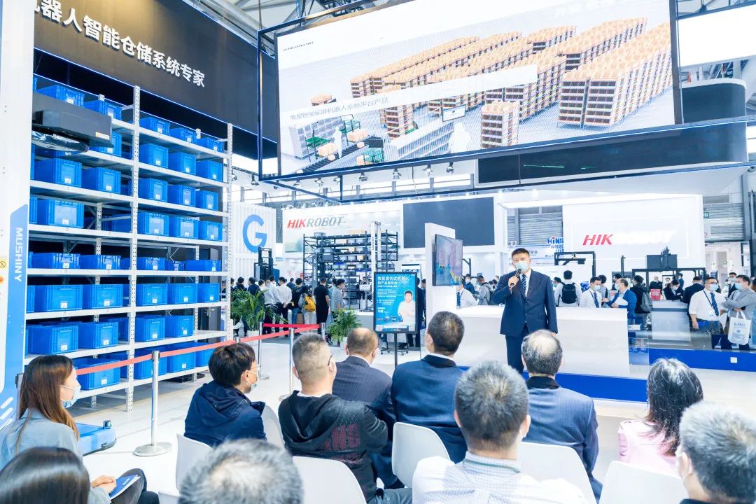 本届展会上,牧星智能推出业内首个平台化机器人系列:车体端完全开放的潜伏式机器人Mushiny T6 – 800和双深位、可变宽度货叉的料箱机器人Z -50SF,以及潜伏式机器人的冷库应用展示。并在CeMAT期间通过官方直播,新品发布会、媒体见面会和创新沙龙等多种方式全方面展示了牧星智能的产品技术和创新应用。