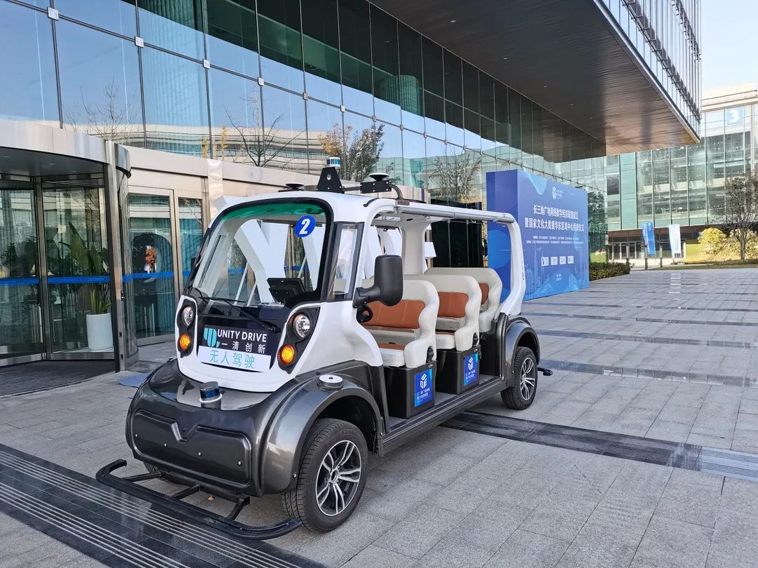 活动现场,与会领导和嘉宾乘坐一清载人接驳无人车,体验无人驾驶新的出行方式。这款雪狮载人接驳无人车采用一清创新自研的全球领先的自主驾驶导航技术,可在各类园区、景区内完成固定线路自动捷运、接驳、观光、展示、自动站点停靠等功能。