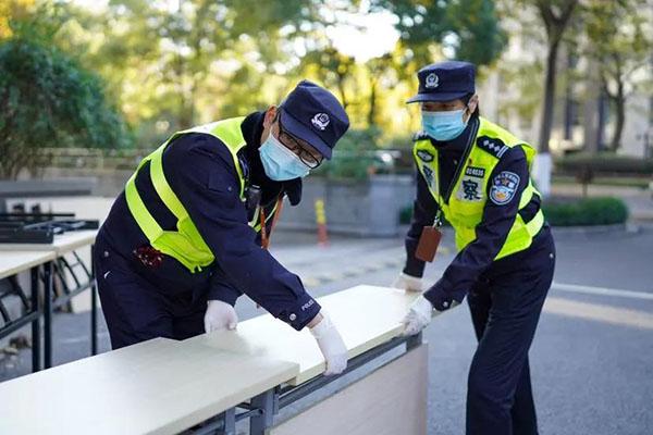 12月1日,浦东香梅花苑一期里的居民开始第三次核酸检测采样。小区里临时党支部的民警们又忙活起来,与志愿者们一起全力以赴,确保检测采样秩序井然。