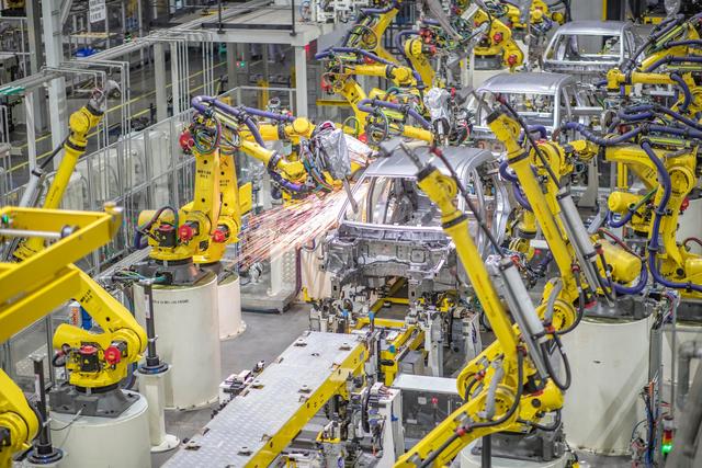 工业领域仍是机器人最主要的应用领域。以工业机器人为核心的智能制造系统加速布局,正有力促进企业降本增效、节能减排。在金康赛力斯两江智能工厂内,1000多台机器人有序运转。在工厂焊装车间看不到一个焊接工。在冲压线上,送料、模具更换和冲压全过程均由多台机器人完成。冲压好的部件由机械手抓取装框,再由物流机器人自动转运,整个过程十分迅速。