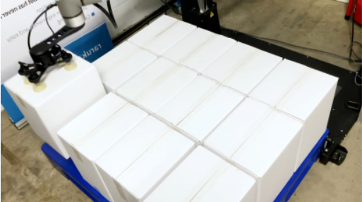 机器人码垛机的设计充分考虑了灵活性。安装、设置和配置快速且简单,它们能够处理频繁的任务变化以及不同的箱子和托盘尺寸。优傲机器人的协作机器人,就像视频中的那个一样,可以拣选各种箱子并处理高达 16 公斤的有效载荷。它们还可以覆盖广泛的高度和不同的托盘尺寸,并且占地面积小。