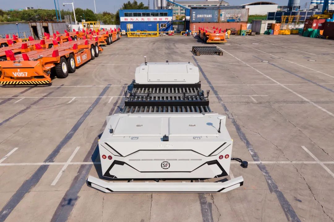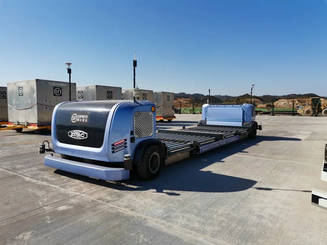 振华重工AGV团队早在2018年就与鄂州花湖机场运营方顺丰航空一起探究用于装载航空板箱(ULD)的新型AGV产品,于2019年完成了第一代ULD AGV产品的可行性研究与最终验收。于2020年在杭州萧山机场完成实景测试工作。2021年在总结经验后,完成了第二代ULD AGV的研发与制造,并最终亮相民航大会。