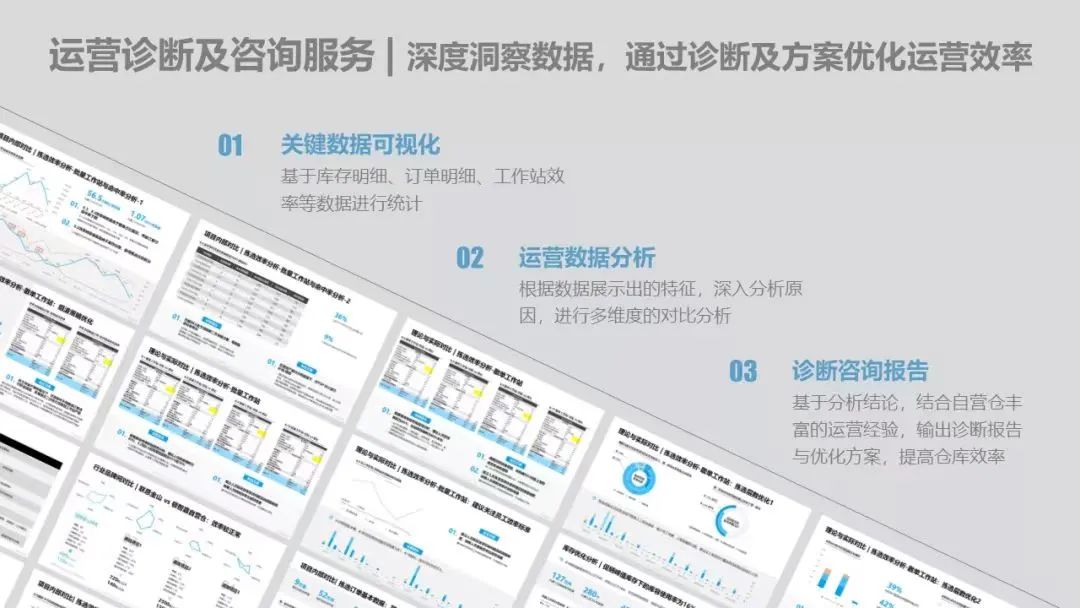 极智嘉运营咨询团队可为客户提供运营诊断及咨询服务,周期性输出运营诊断报告。诊断报告涉及订单结构、库存结构、工作站效率、机器人运行状态分解等信息。通过主动的数据追踪、对比和判断,进行问题根本原因分析,为客户提供专业的改善建议,并对仓储现场运营优化给以支持。