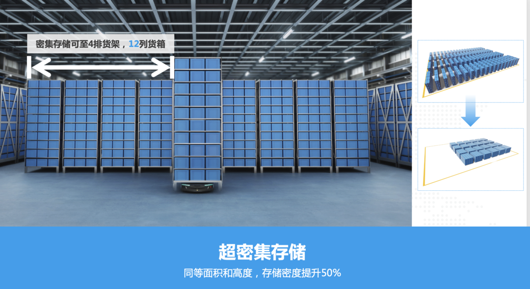 - 机器人效:出库订单预测,闲时/夜间自动理货,将关联商品聚合到同一个货架上,命中率可达10箱以上