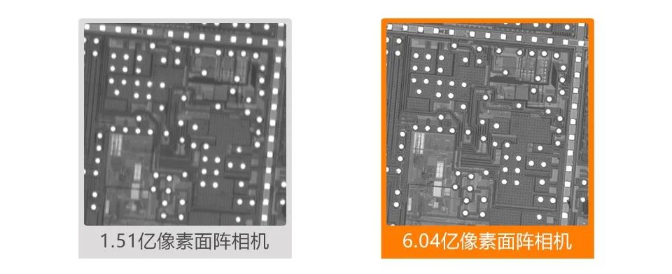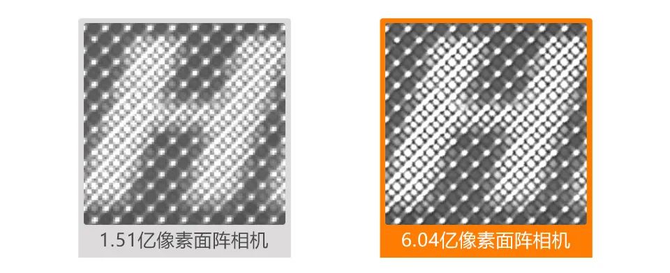 在相同的环境下1.51亿像素面阵相机与6.04亿像素面阵相机拍摄对比,超高分辨率带来的相比于前者单像素精度4倍的提升。下图为拍摄晶圆。