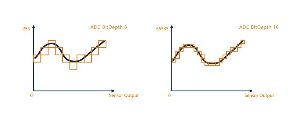 相机支持16-bit ADC输出,相比于8-bit灰阶的变化更加的细腻。