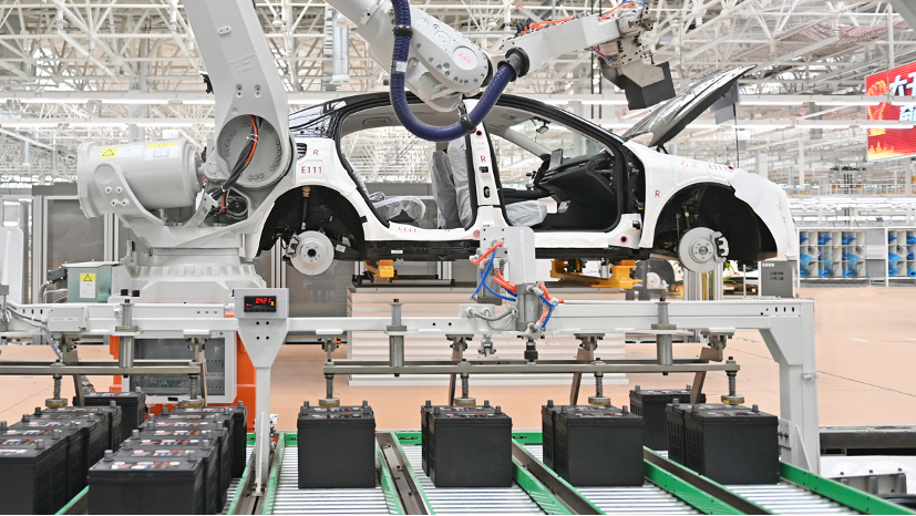 “繁荣工厂包含冲压、焊装、涂装、总装、电池电驱五大车间,焊装车间配备600余台机器人,焊接自动化率达到100%。总装车间整体技术水平国内领先、国际先进,兼顾传统车型与新能源车型,不受平台与车型数量限制,可以实现从A级到D级车型的全柔性混流生产,年产能可达24万辆……”伴随着中国一汽红旗繁荣工厂总装技术高级主任的讲解,记者在总装车间看到了超越传统模式的生产线:28台机器人分工明确、各司其职,机械手臂像一个和谐的团队一般有条不紊地运行,将座椅、蓄电池、备胎等都自动、精准、有序地安装,AGV小车自动调度,轻松躲避地面障碍物,将物料运送至需要的工位……那些曾经在科幻大片中看到的智能化场景,如今就出现在记者眼前。