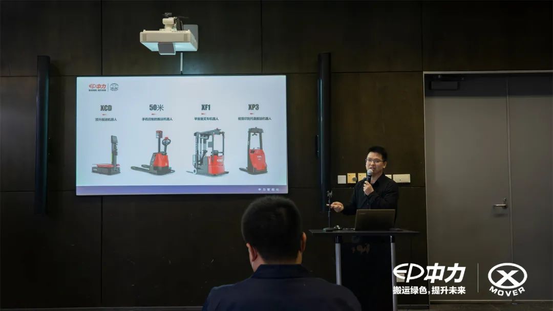 “人类物料搬运大势:从用手搬运货物到用手动工具搬运-用动力工具搬运再到机器人搬运,中力搬马机器人就是第四代搬运工具。”——X-Mover事业部 邱方长《搬马机器人-人类第四代搬运工具》的主题演讲