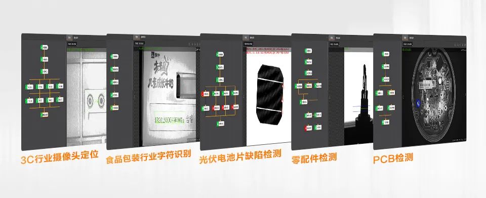 多样化示例,便于学习VM教育版提供独立的示例程序安装包,例如3C行业摄像头定位、食品包装行业字符识别、光伏电池片缺陷检测、零配件检测、PCB检测等,包含软件功能、算法性能以及实际应用案例展示,使用者可以自由选择相关方案运行,进而加深对工具的了解。