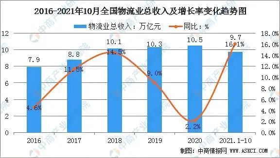 由于亚洲人口数量众多,对各类资源需求度也比较高,进而推动整个物流市场的发展。以人口最多的我国为例,据《中商情报网》的数据显示,2021年1-10月,我国物流业总收入9.7万亿元,同比增长16.1%,增速比上年同期提高15.2个百分点,两年平均增长8.2%,整体物流市场发展持续走高。