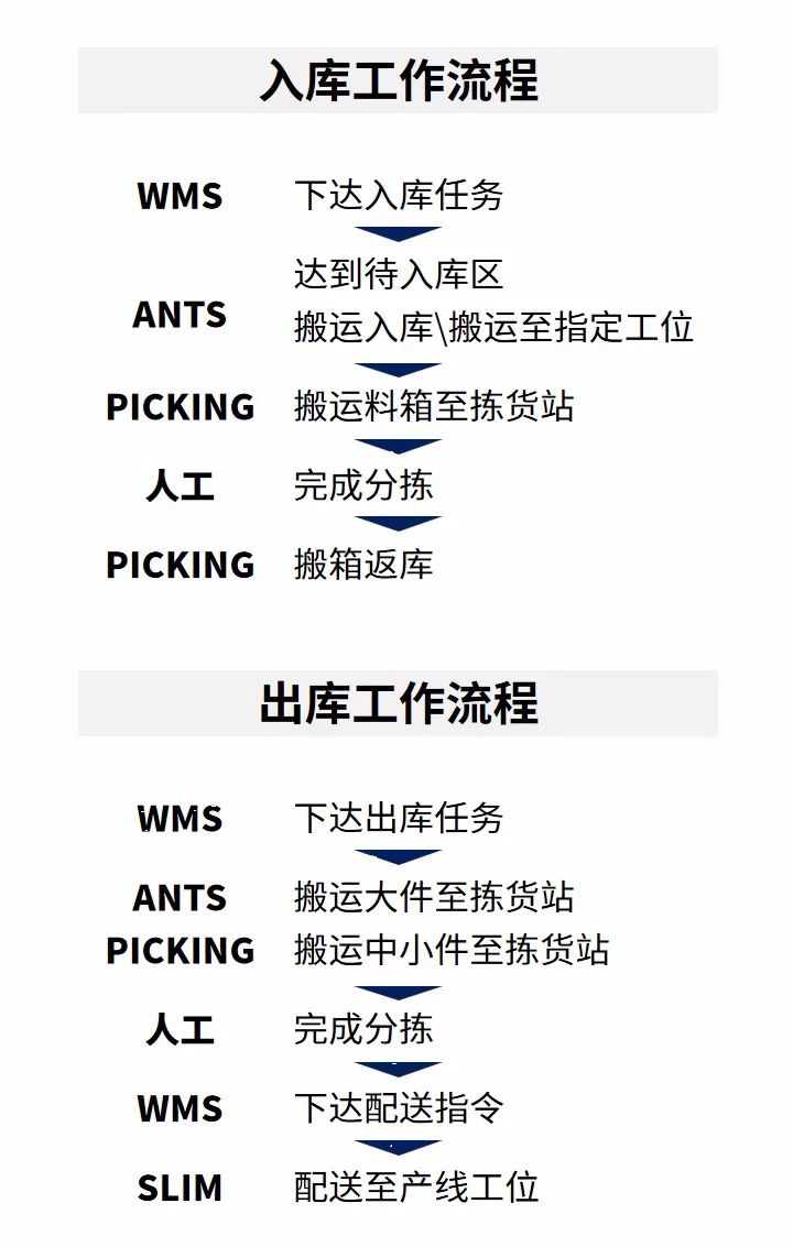 项目覆盖生产车间、原材料仓库,机器人完成入库搬运、出库拣选、线边配送等环节的自动化搬运作业。