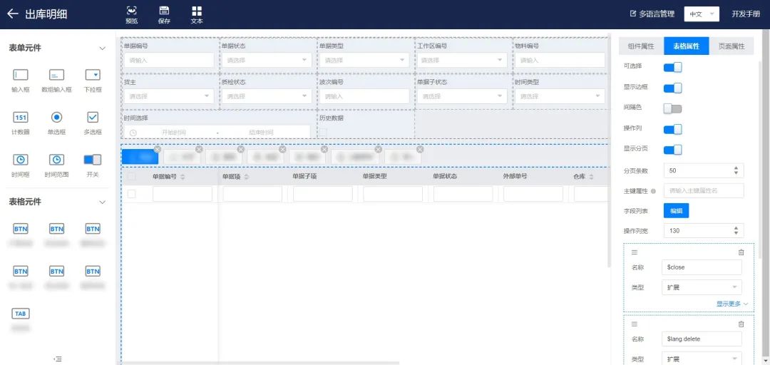 iWMS核心功能页面采用DataView配置开发实现,用户可灵活调整iWMS页面,并且支持在iWMS中新增DataView发布的动态页面。
