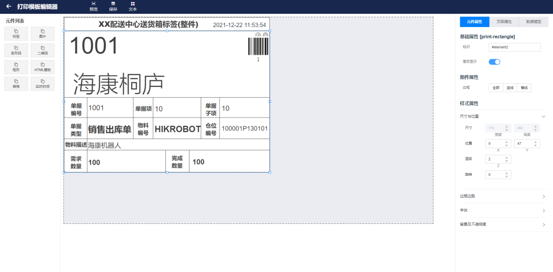 支持自定义拖拽元件配置打印模板。